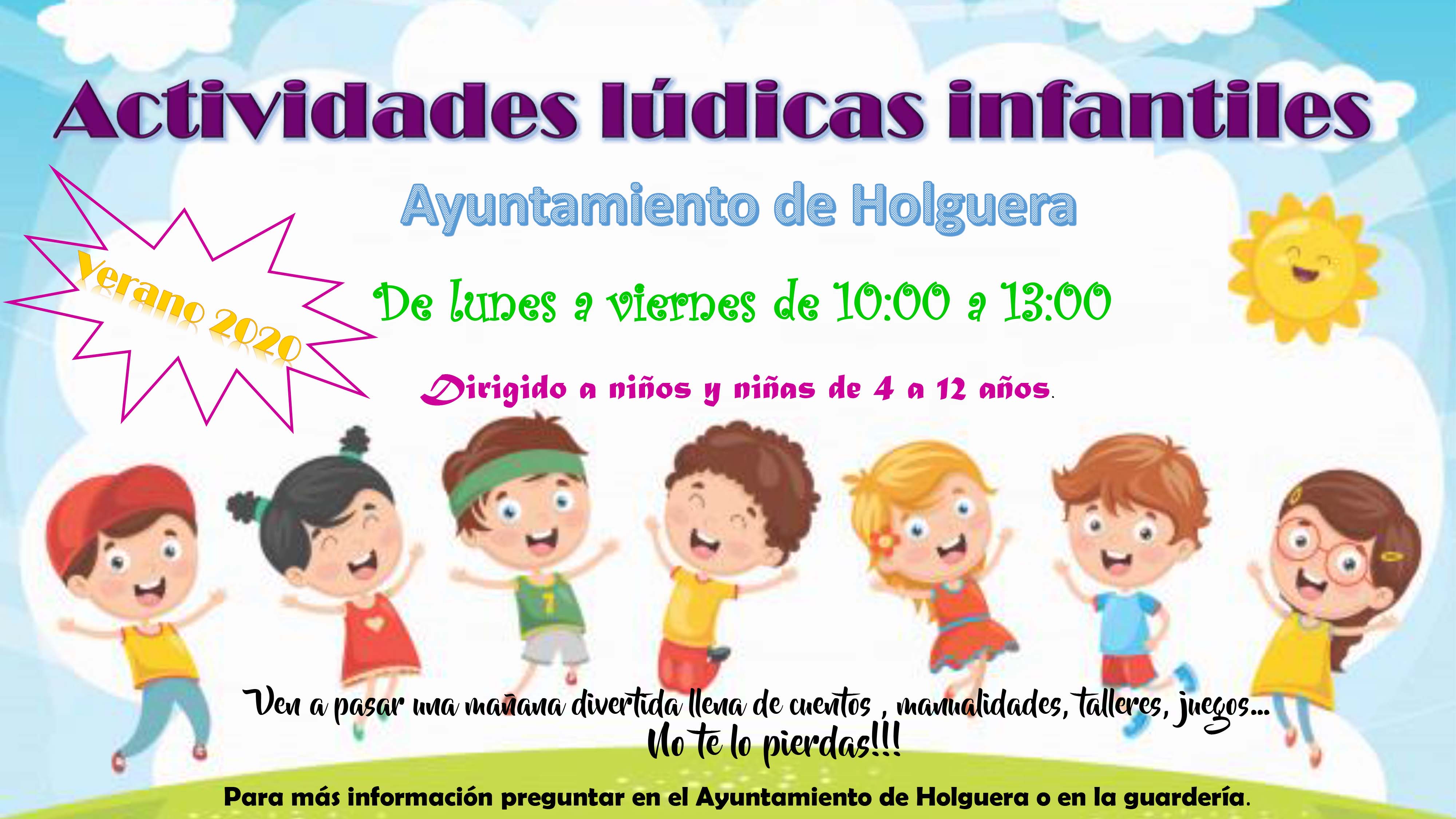 Actividades lúdicas infantiles 06 julio 2020 2020,Actividad,Ocio El Ayuntamiento de Holguera informa que de lunes a viernes de 10 a 13:00 horas se van a realizar actividades lúdicas infantiles.