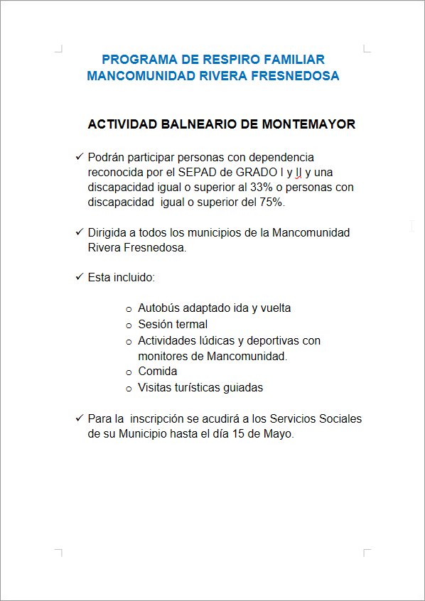 PROGRAMA DE RESPIRO FAMILIAR MANCOMUNIDAD RIVERA FRESNEDOSA